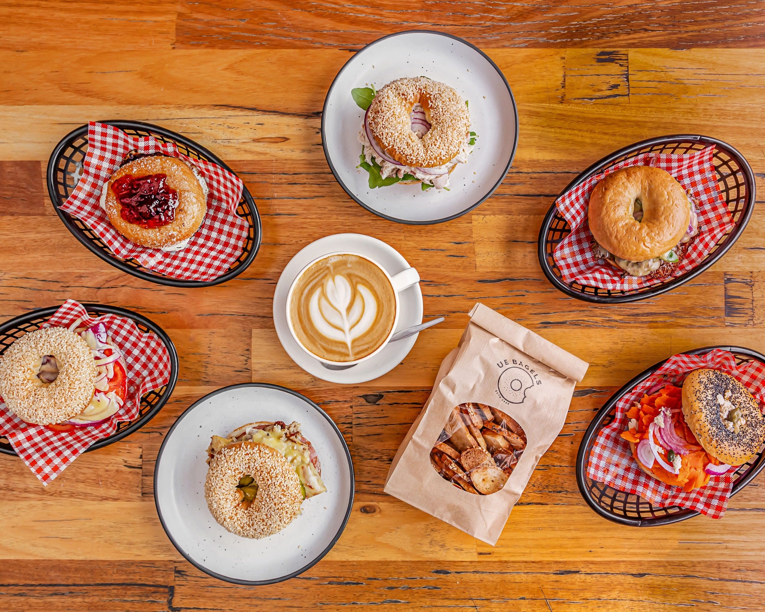 UE Bagels is a unique Bagel shop that combines the best of a gold coast coffee shop and a bagelry. We offer a full menu of delicious breakfast &lunch. items, as well as a wide selection of coffee and tea drinks. Whether you're looking for a quick bite or a relaxing meal, we have something for everyone.